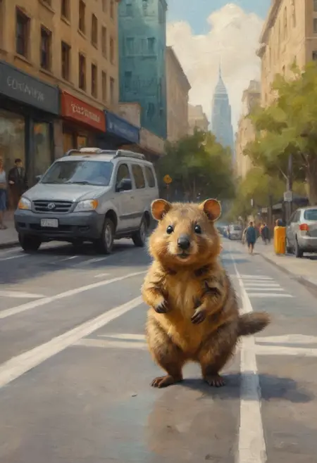 • Start with a full 1.0 LoRA strength and adjust down to 0.7 or 0.8 for a subtler painterly effect. You can adjust upward (to 1.2 or maybe a little more) to maximize the painterly appearance, but it can start to introduce some quirks