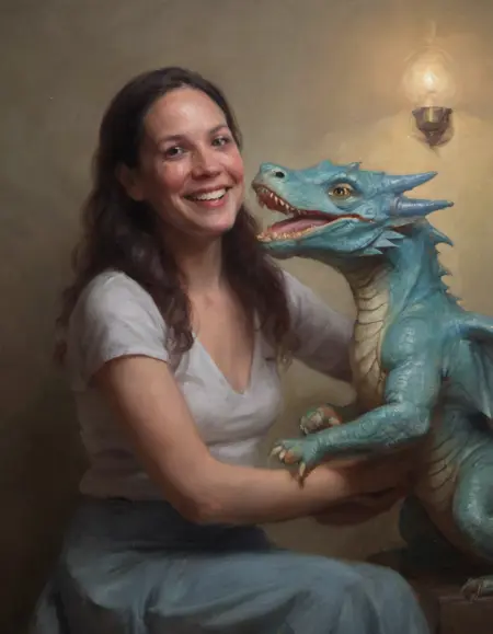 无需对你的提示词做特殊处理——只需描述你想要的画面即可。我通常以“油画风格的…”开头。如果你省略这个词,图像有时会偏向摄影感,出现模糊背景以及绘画与摄影散景之间的奇怪混合。这或许是一种不错的风格,你也可以刻意通过使用特定摄影师的名字来实现它。但使用“油画”作为提示,能确保一切符合 LoRA 的预期风格。