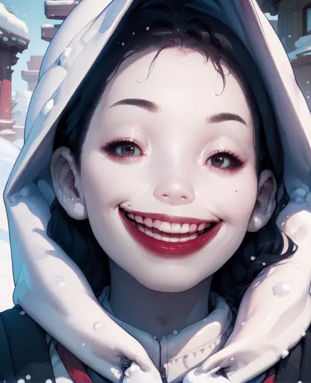 通常は目がありませんが、ホラー感を減らすためには、目を閉じたり、髪で目を隠したり、目を影で覆ったりしてください