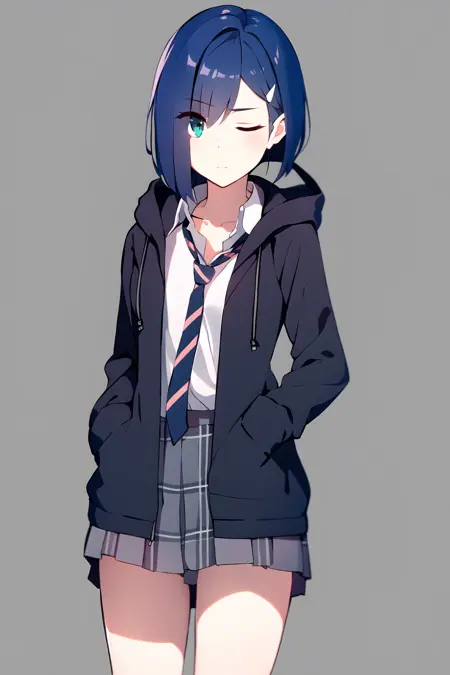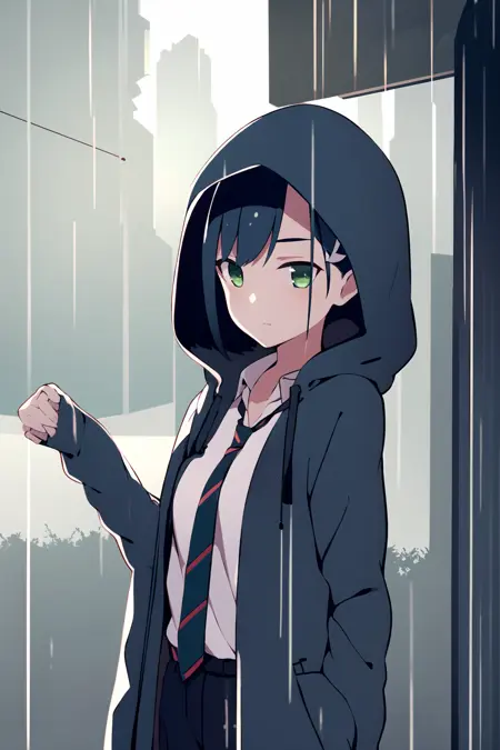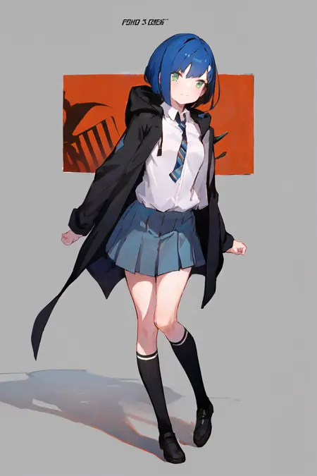 学生制服:フード、ストライプネクタイ、学生服、白いシャツ、ボタンが開いたシャツ を使用