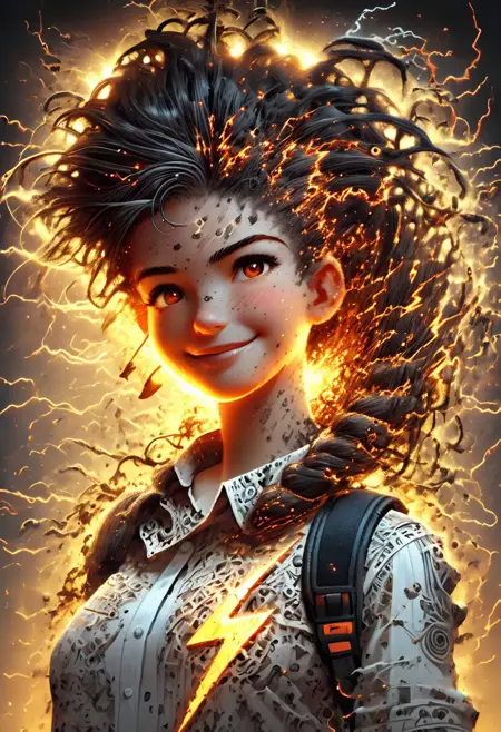 这个 LoRA 的作用类似于“世界变形器”,能在你的图像中添加微小、橙色、发光的闪电发光的电能,在提示词中使用这些元素或其变体效果极佳。下方为强度示例。