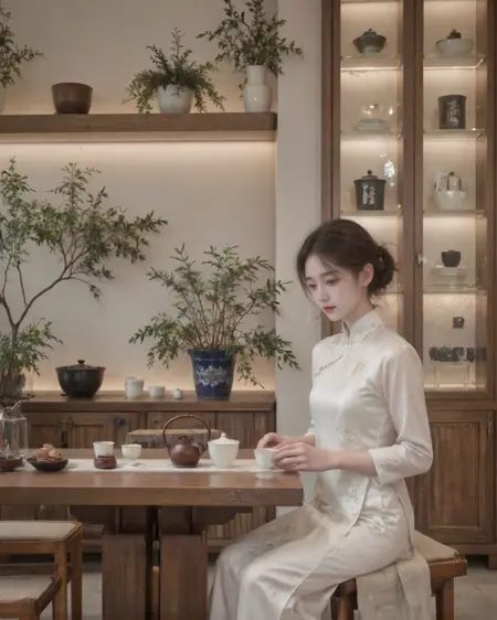 它可以直接输出场景,也可用作背景。F1对自然语言的理解非常出色,便于标记。建议权重设为0.8,因为它能很好地与其他LoRA整合为环境。触发词为“茶馆”。建议添加一些情绪词,如“禅意/宁静”。使用LoRA与不使用LoRA的区别在于,去除油性效果会使图像更偏粉红,毕竟使用的是真实照片。