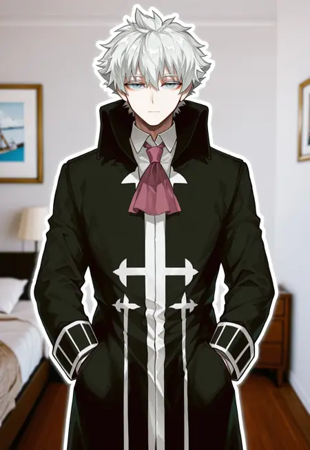 For both 1st and 2nd ascension — sansonorig, black coat, long coat, ascot, pink ascot, closed coat/open coat (you can choose what you prefer the most), silver-horse-shaped shoulder armor, shoulder armor, white shirt