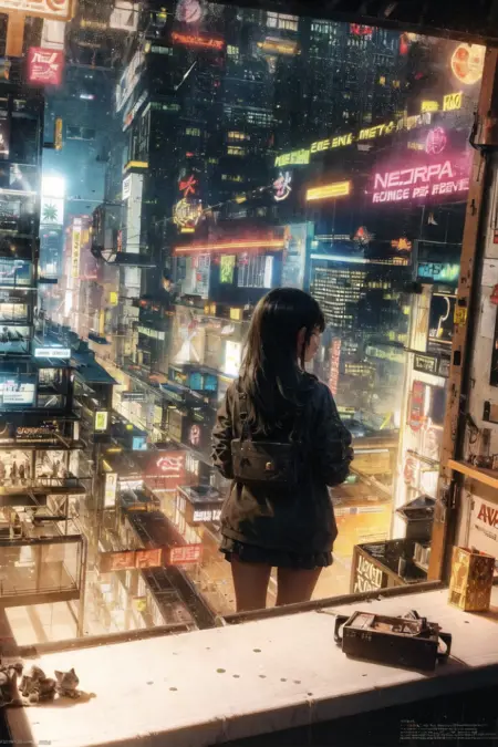 大量细节,多样化的构图,强调小细节、建筑、赛博朋克风格、特写、动漫动物、水彩画等