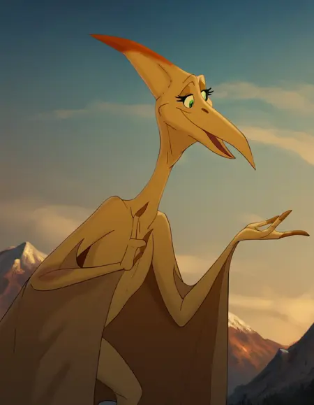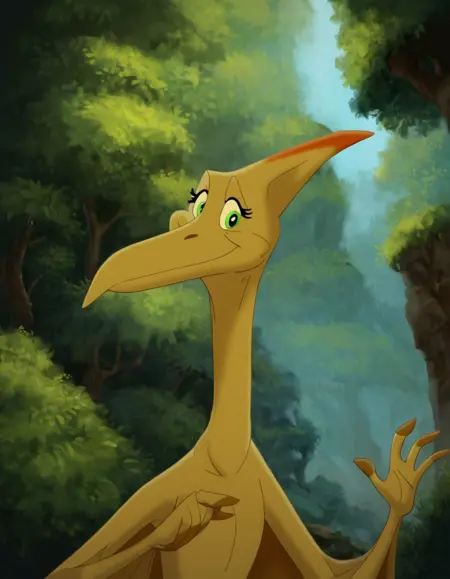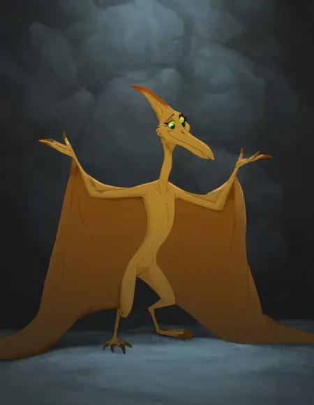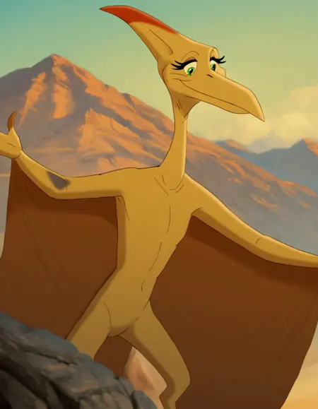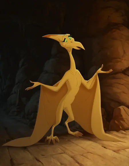 여기서 우리는 시리즈 '타임 이전의 땅'에서 직접 나온 새 캐릭터, 에타, 공룡을 소개합니다.