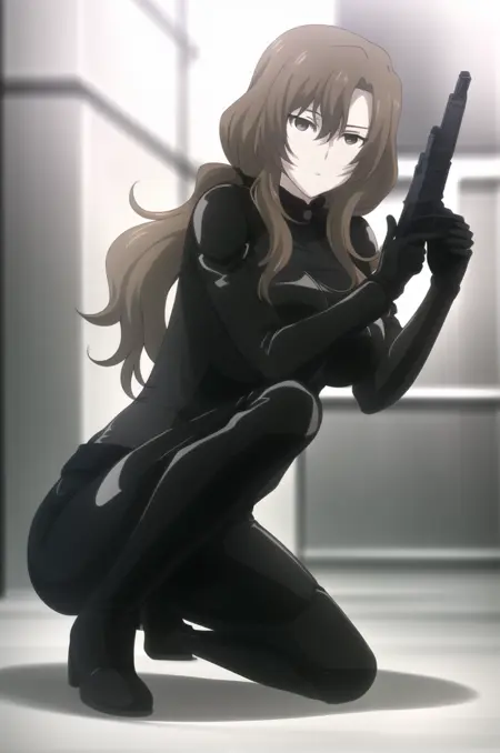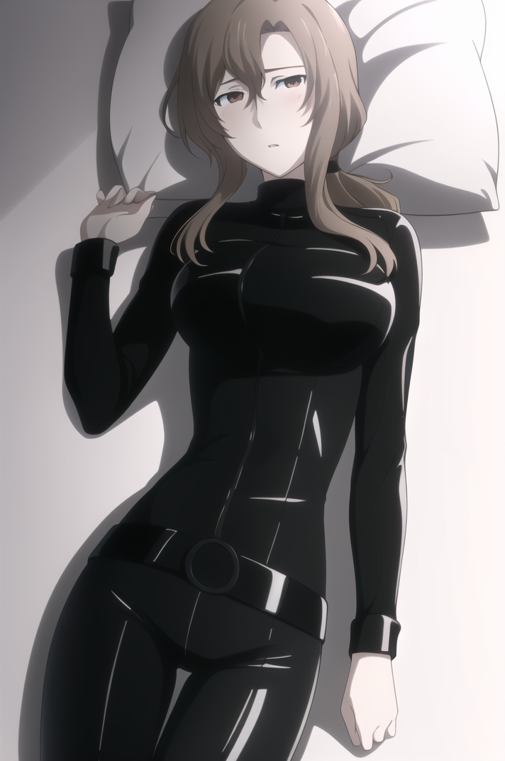 outfit_2,黑色紧身衣,长袖,大胸部,黑色膝上靴,低马尾,发圈,