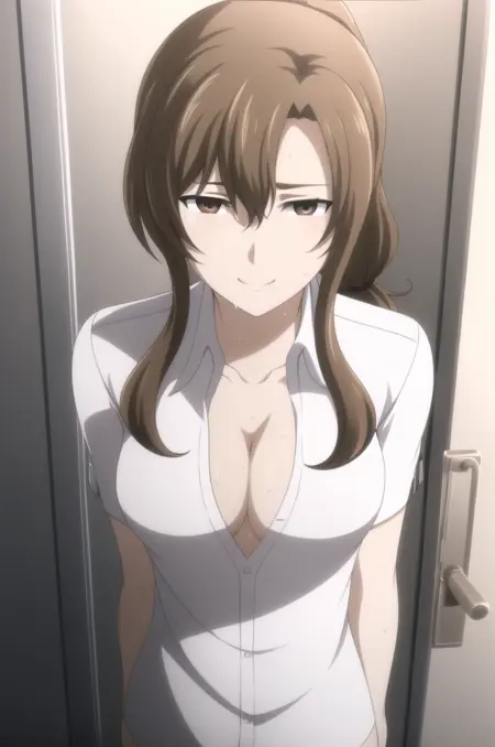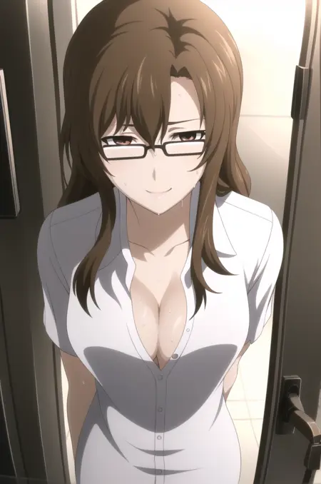 <lora:SteinsGateMoeka-v1-07:0.6>, ChopioMoeka, 棕色头发,长发,棕色眼睛,(看着观众:1.3),