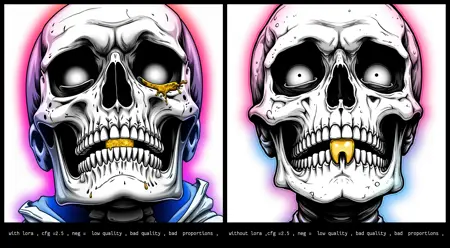 - 결과에 마법을 더해보세요 (이 LORA를 사용했을 때와 사용하지 않았을 때 비교해보세요)