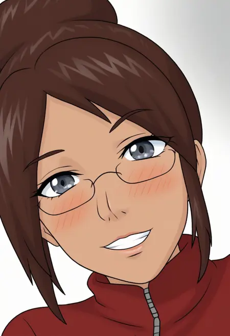 외모를 표현하려면: 갈색 머리, 머리를 땋아 올림, 단발, 진한 피부, 성숙한 여성, 머리 땋기, 옆머리, 안경, 단일 머리 땋기, 회색 눈, 대유방, 거대한 가슴, 뺨이 붉음, 나비 문신, 팔 문신