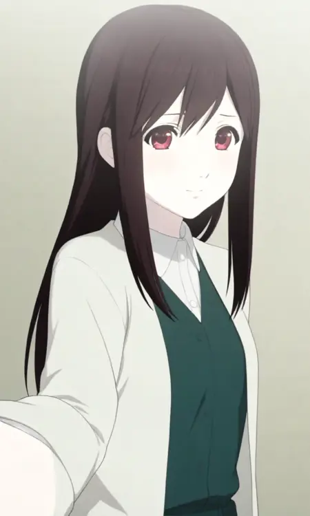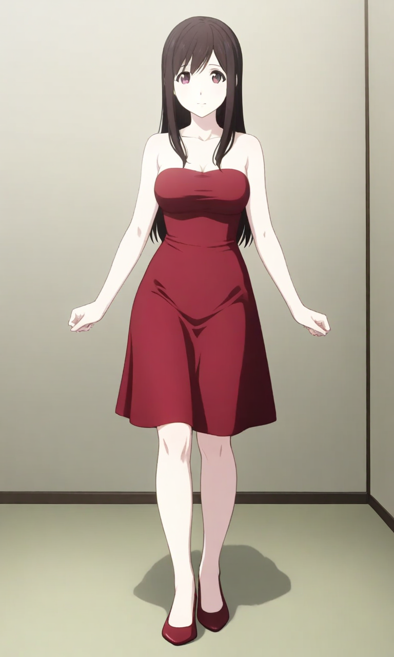 动画角色女人knights of sidoniapale skin, anime character, long hair, female, straight hair, dark brown hair, reddish-pink eyes, a soft and delicate expression, tsumugi shiraui, full body, adult, slim build, 170 cm tall, bust: modest to medium, fitting her youthful and elegant design. waist: slim and well-proportioned. hips: feminine but not exaggerated, maintaining a balanced and graceful figure.