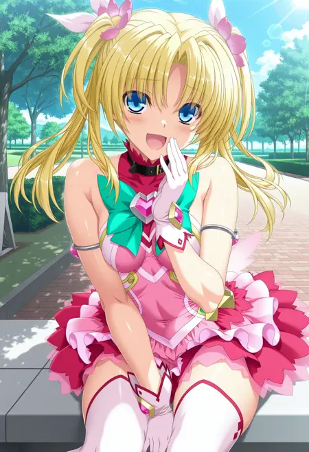 트리거 단어: c-sere, 긴 머리, 금발, 듀얼테일, 양측 올림, 머리 꽃, 머리 띠, 파란 눈,