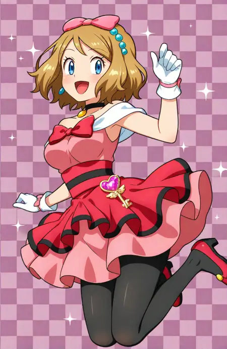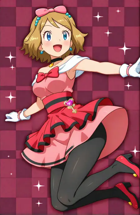 shwserena, serena \(pokemon\), blue eyes, light brown hair, short hair, bangs