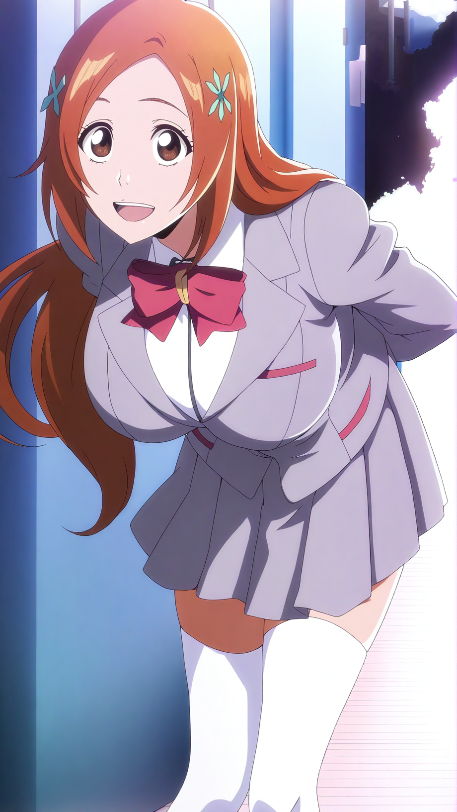 0r1h1m3 1n0u3、オレンジ色の髪、長い髪、茶色の目、髪留め、