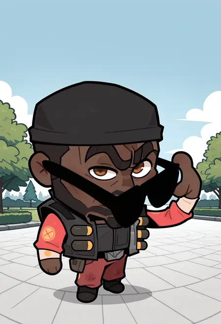 1boy, demotf2, 갈색 눈, 검은 피부, 검은 피부를 가진 남성, 안대, 얼굴 수염, 수염, 검은 모자