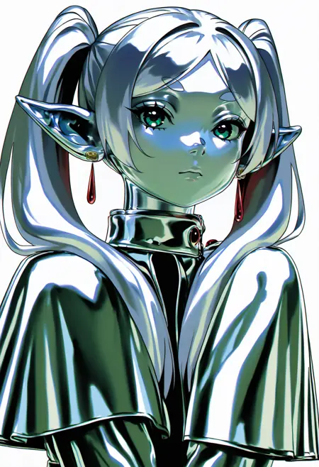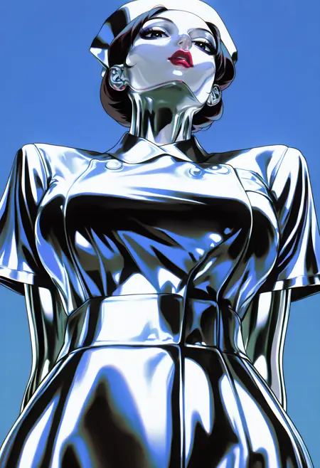 プロンプト: chrome, shiny skin, chrome clothing, chrome skin