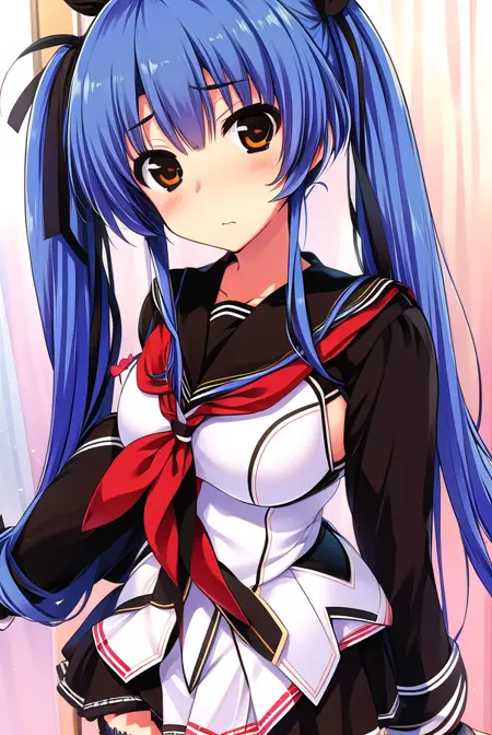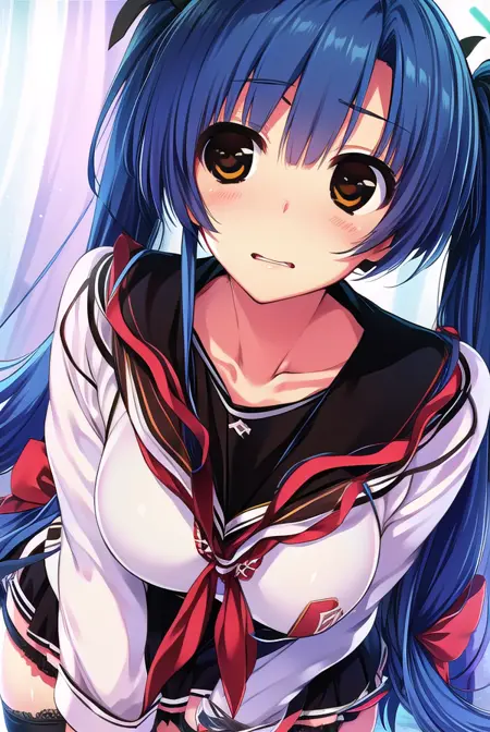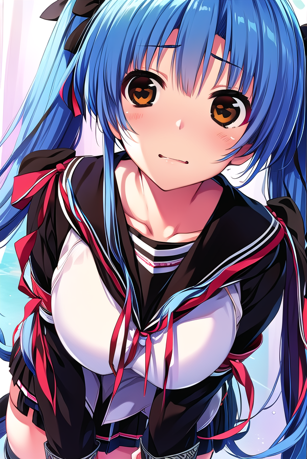 kotoha okihara, 긴 머리, 리본, 트윈테일, (갈색 눈:1.5), 매우 긴 머리, 파란 머리,