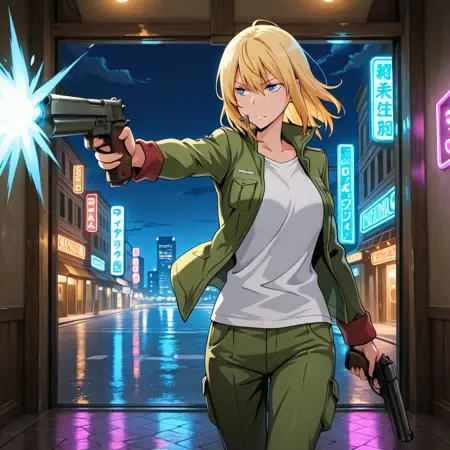 大きな乳首ネックレス, military_uniform, green headband, (01), green jacket, white t-shirt, black belt, green pants, black boots,