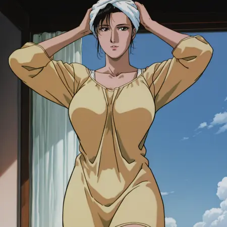• 头上围毛巾触发词:ChunLiMovieTowel, 1girl, 头上围毛巾, 黑发, 成熟女性, 复古艺术风格, 大胸, 1990年代(风格), 棕色眼睛, 西部镜头