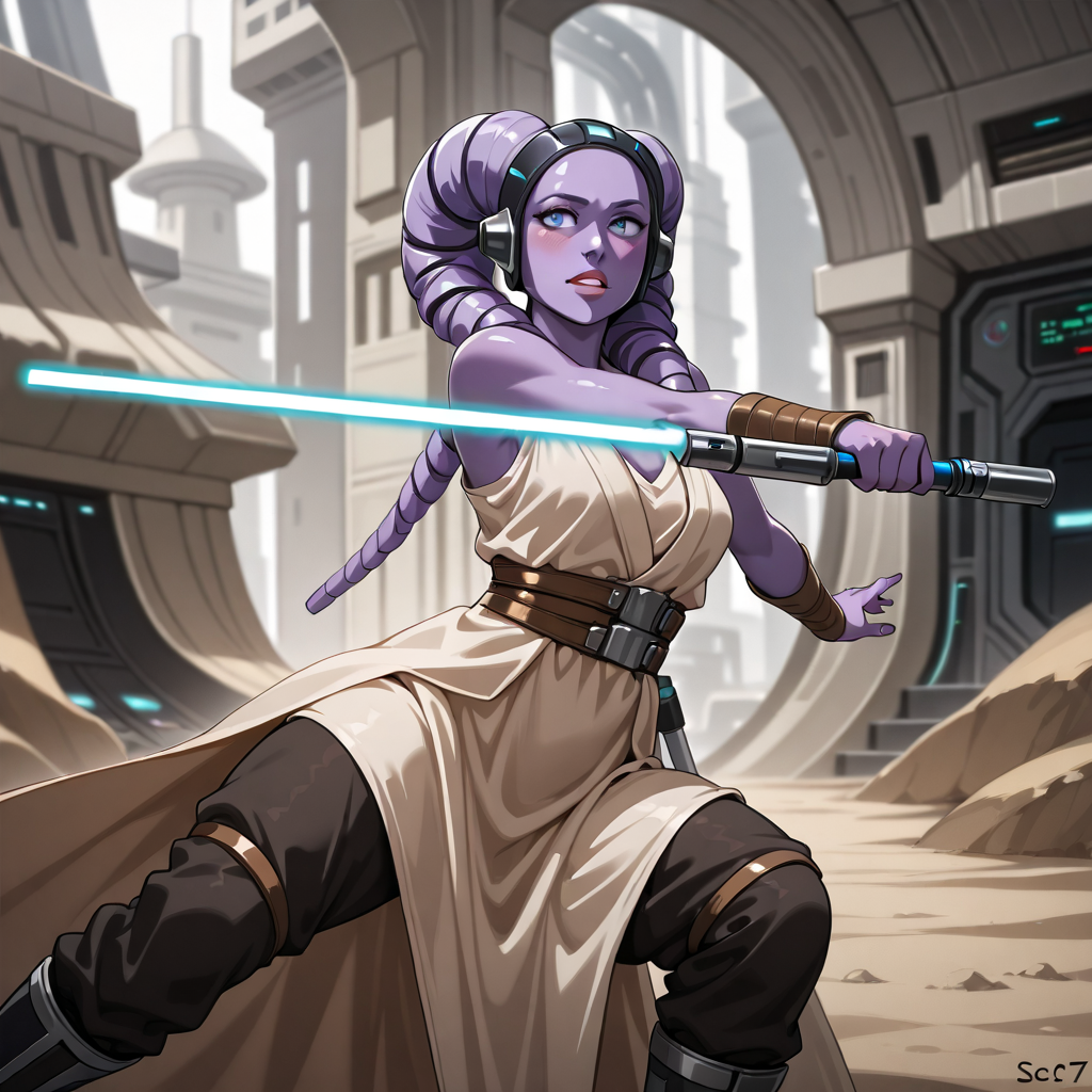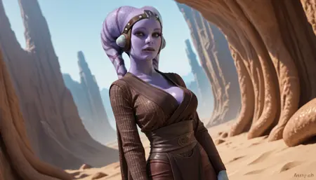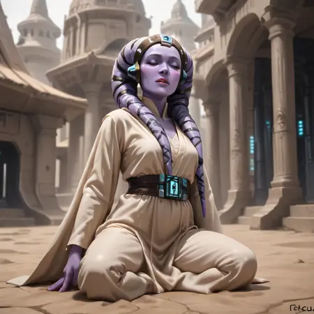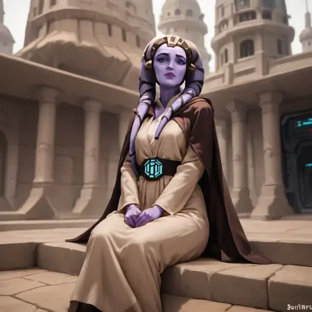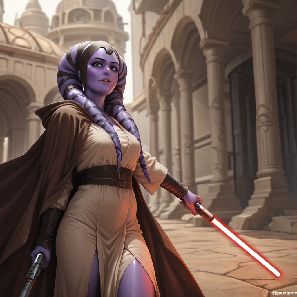 【Trigger words】: Diala_Passil, purple skin, lekku, headpiece, jedi robes, brown cloak,