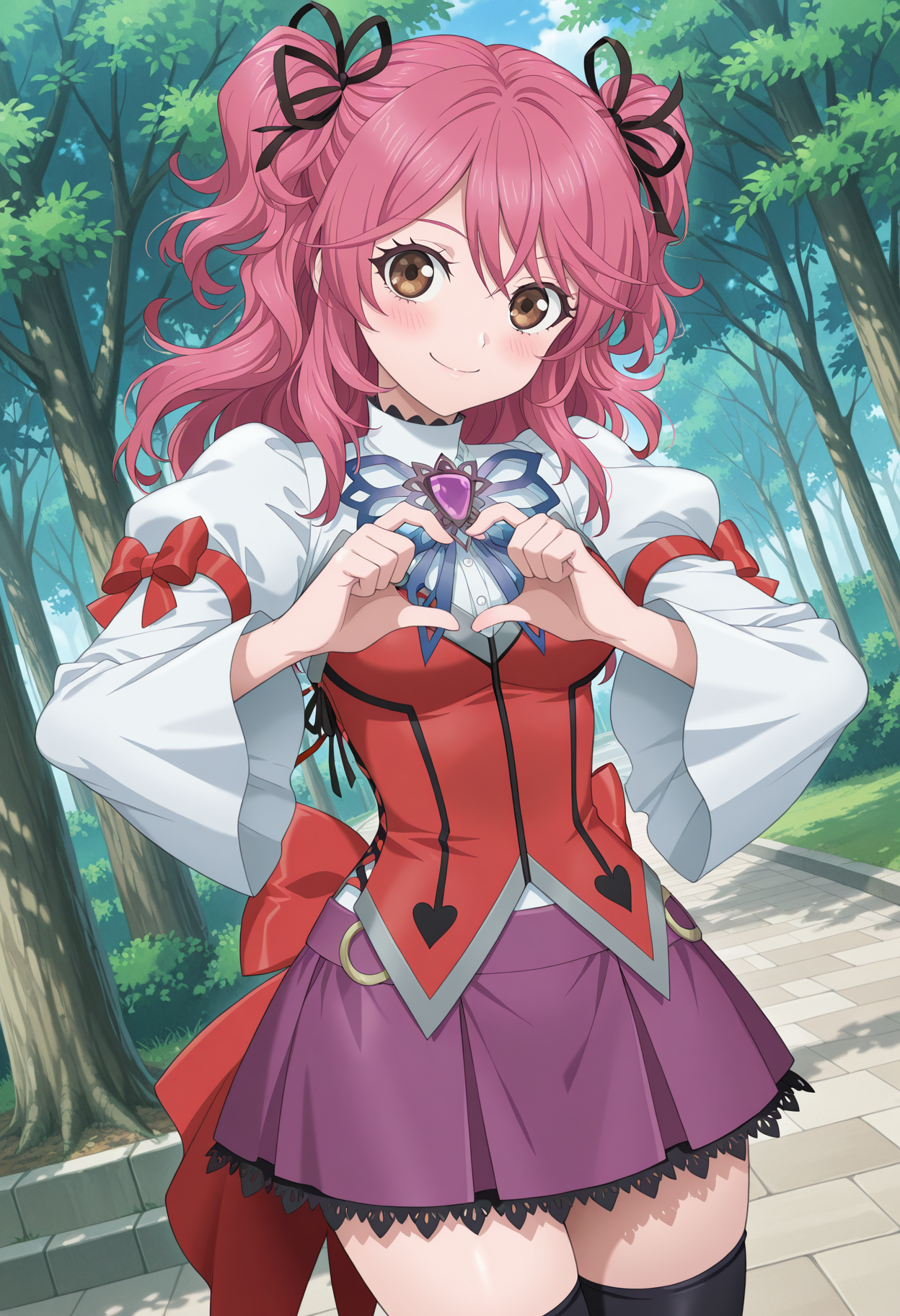 トリガー単語: c-cheri、茶色の目、長い髪、両サイド上げ、ピンクの髪、髪リボン、黒いリボン、
