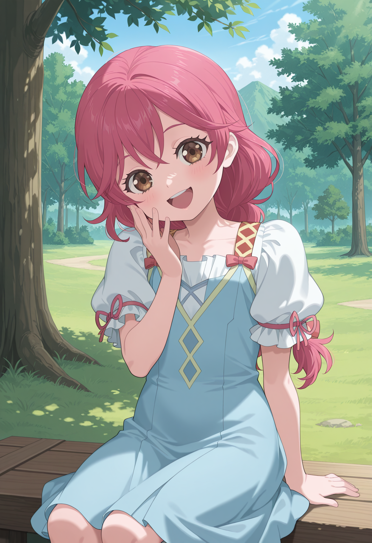 トリガー単語: c-cheri、若返った外見、長い髪、ピンクの髪、茶色の目、片方の編み込み、