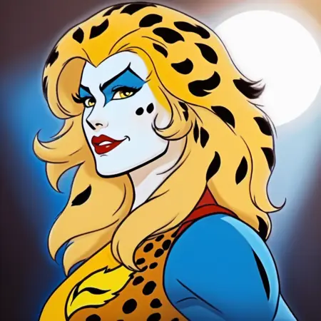 πŸ“πŸŒŸ Trigger: (CheetaraQuiron character), retro artstyle, cartoon, facepaint, skintight bodysuit, makeup, leotard, muscle body,