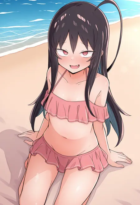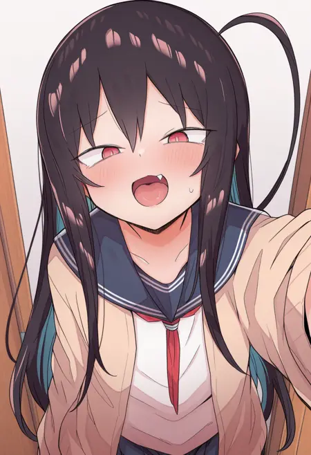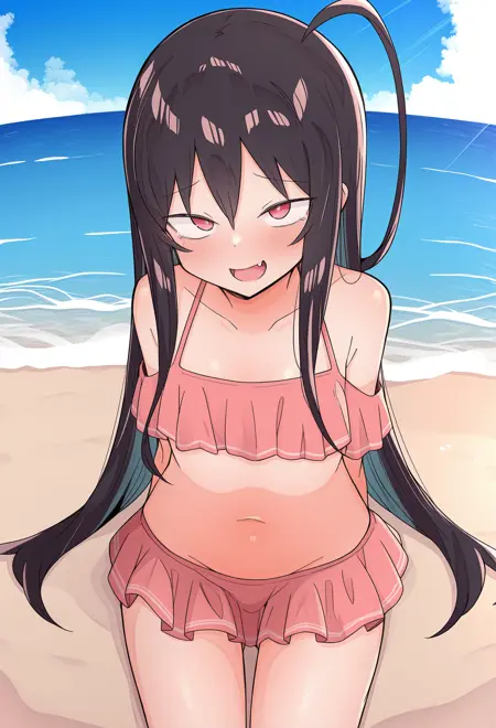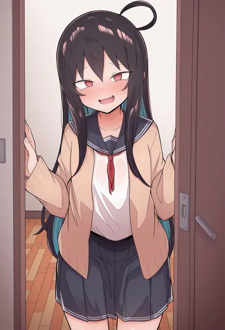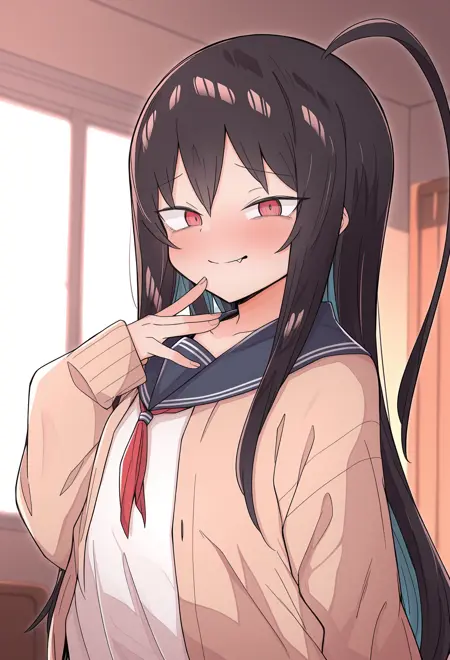 Base: red eyes, ahoge, black hair, fang, mesugaki, (optional)