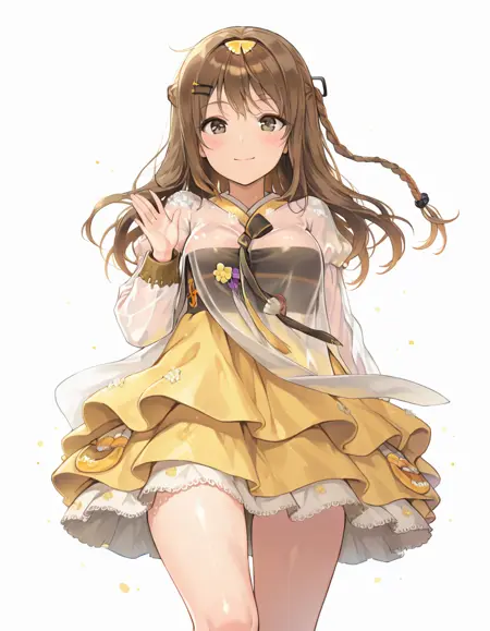 far east princess, FEP_hanbok, 透明裙子,层叠裙,K2_hairclip,透明上衣,K2_hair_ornament,辫子,侧边辫子,白色鞋履