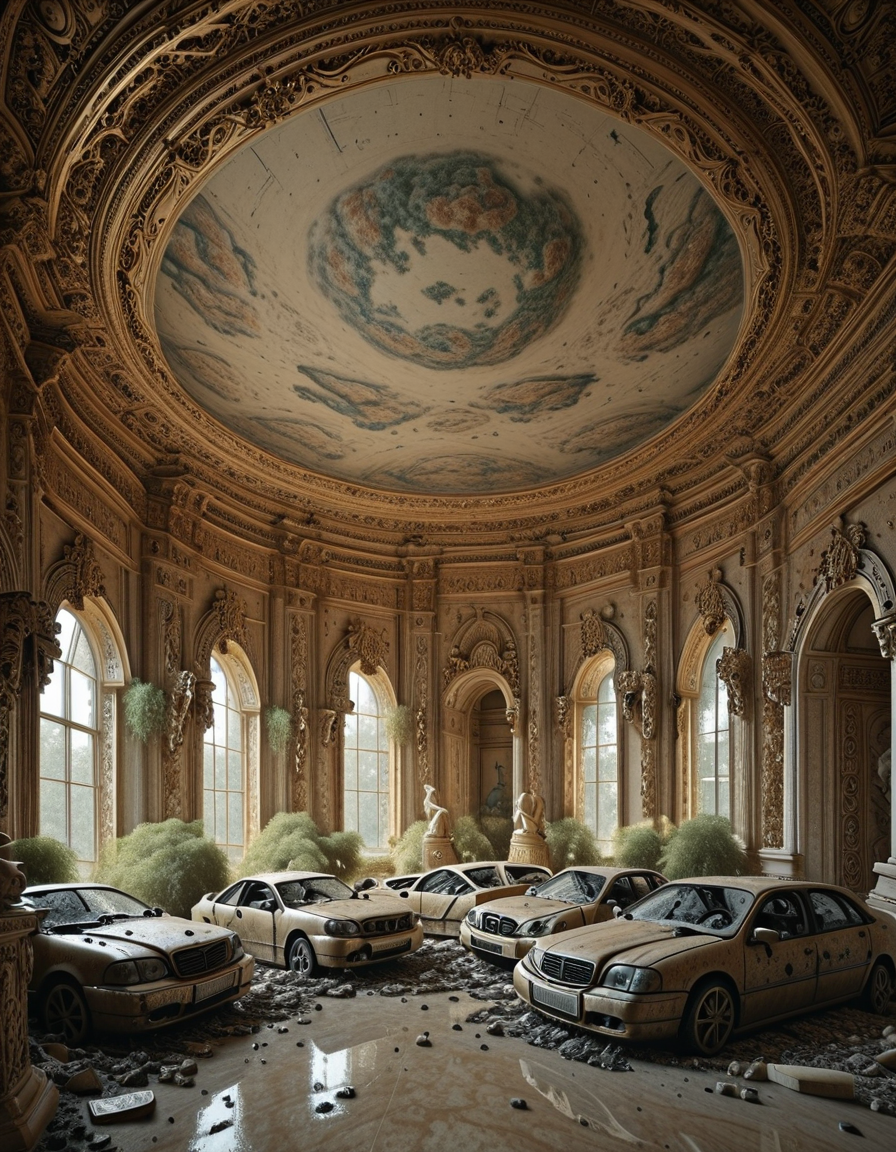 예를 들어, 화려한 바로크식 사무실 안에 텐트, 쌓인 자동차, 기타 물건들이 함께 존재할 수 있습니다. 물론 제가 "15가지 효과"를 추가했기 때문입니다.