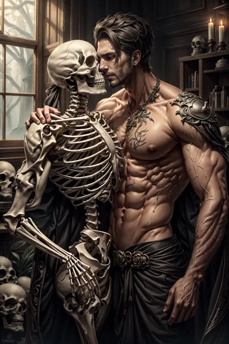 Hmmm, I'm not sure about this one.. The idea was to create a concept of a necromancer re-raising their dead lover or a necromancer with a harem of skeleton servants (not like sexually but more like an aesthetic and artistic kind of way). But I don't know if its a common problem with SD or my prompting, but the AI keeps thinking the skeleton as another person so it kept giving it human features and muscles. Either that or it made the human have skeletal features like a skull face. So this LORA is a little too finicky and inconsistent and is hard to get a good result without a lot of inpainting and retries. You have been warned..