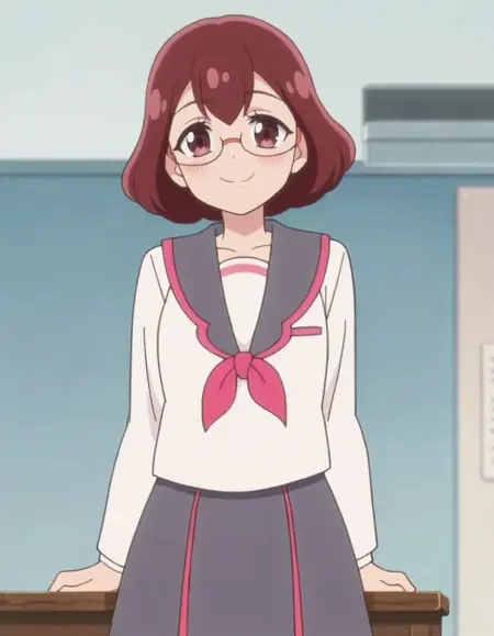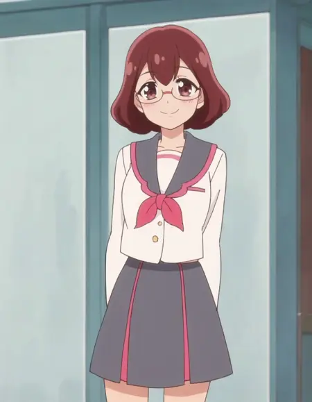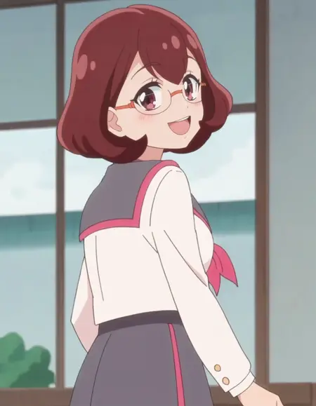 score_9, score_8_up, score_7_up, anime screencap, solo,1girl,higashinakamikoto, glasses, school uniform, serafuku, skirt, neckerchief, sailor collar,lora:higashinakamikoto\_pony:0.8