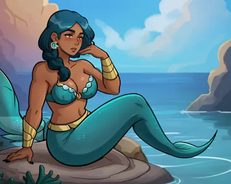 シンプルなプロンプト:<lora:mermistav118:0.7>(mermista, single braid, dark-skinned female)