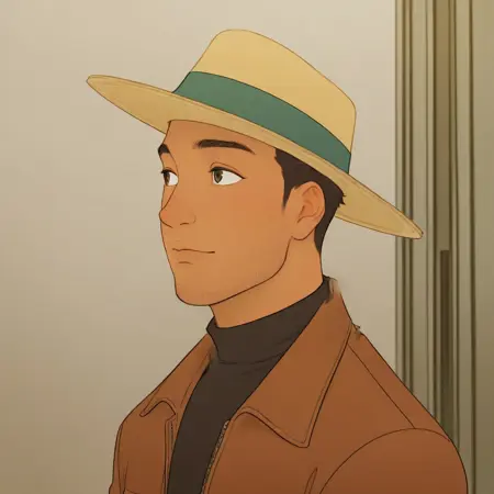 提示建议:肌肉发达、胸肌、绿眼睛、棕发、简单的帽子、胡须剃得不整齐