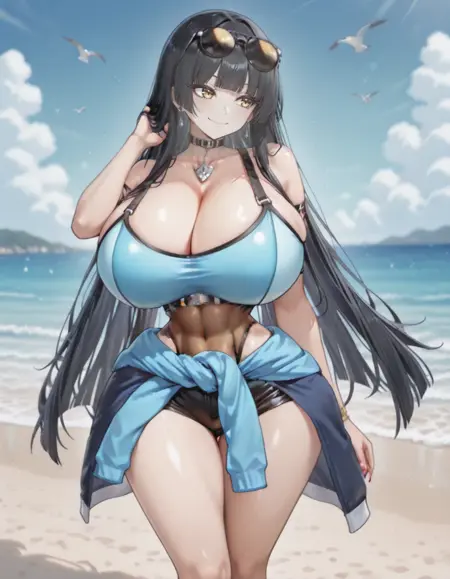 권장 프롬프트: gyaru-hime, huge breasts, pale skin, skinny, narrow waist, very long hair, black hair, straight hair, hime cut, yellow eyes, long eyelashes,