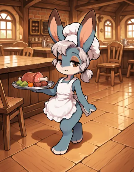chibi, furry, semi-anthro, lagomorph, short limbs, digitigrade, prick ears