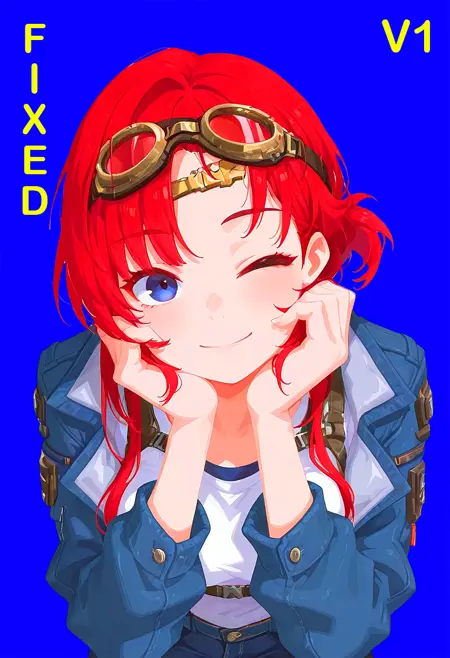1girl, leo2, beige jacket, dark red hair, medium breast, white bra, gray long sleeves, black gloves, black shorts, glasses on forehead, belts,
