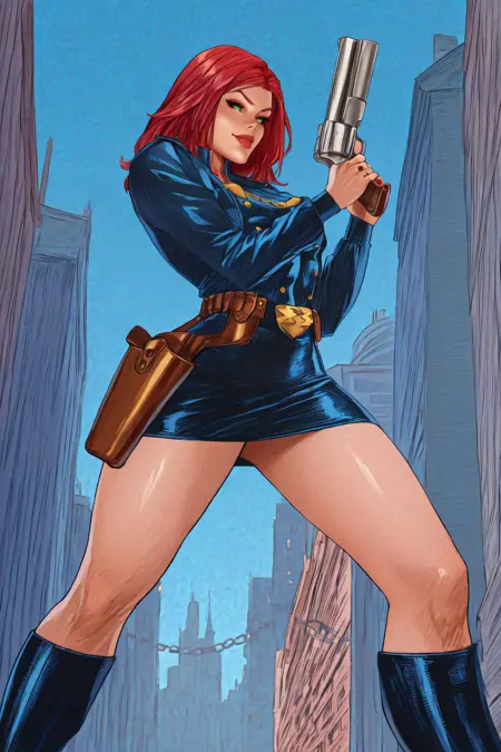 • 触发词(警察):icaria,长发,绿眼,妆容,制服,锁链,腰带,指甲油,迷你裙,枪套,高筒靴