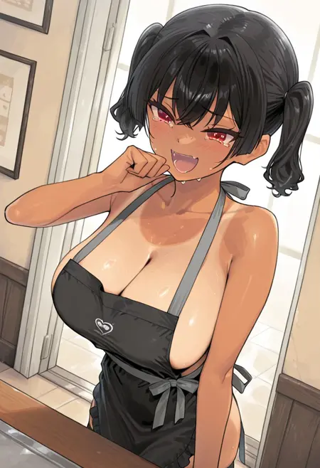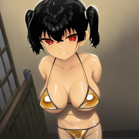 (( lora:sasaki\_kanna:1 , sasaki_kanna, piercing red eyes, clear eyes, bright pupils, beautiful eyes, beautiful black hair, short twintails, bangs, left side ponytail, thin waist, wide hips, beautiful skin, huge and shaggy breasts, short busty woman, natural beauty, extraordinary beautiful woman, attractive woman, super sexy woman, lustful body, sexy woman with seductive obscene body, sensual body, voluptuous body, sexy beauty, ))