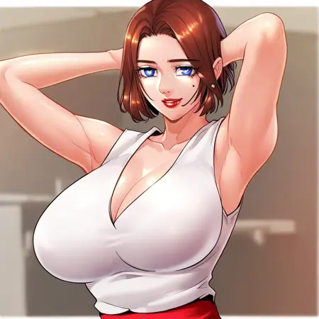 (( lora:ha-na:1 , ha-na, 凌厉的蓝色眼睛,清澈的眼睛,明亮的瞳孔,美丽的眼睛,美丽的棕色头发,美丽的短波波头,巨大而蓬松的乳房,纤细腰身,宽阔臀部,美丽的肌肤,自然美,超凡美丽的女性,有吸引力的女性,超级性感的女性,欲望的身体,带有诱惑性露骨身体的性感女性,性感的身体,丰满的身体,性感美,))