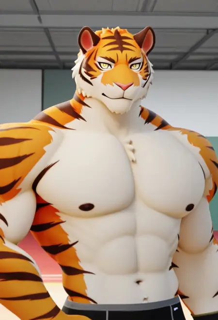 Anthro,tiger,stead,muscular male,yellow eyes,orange fur,black marks,tail