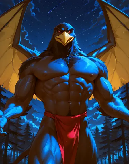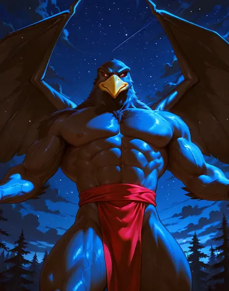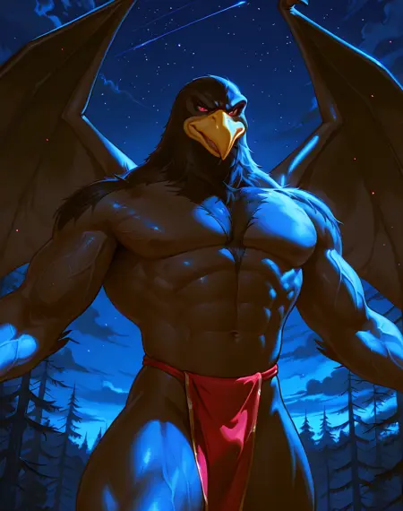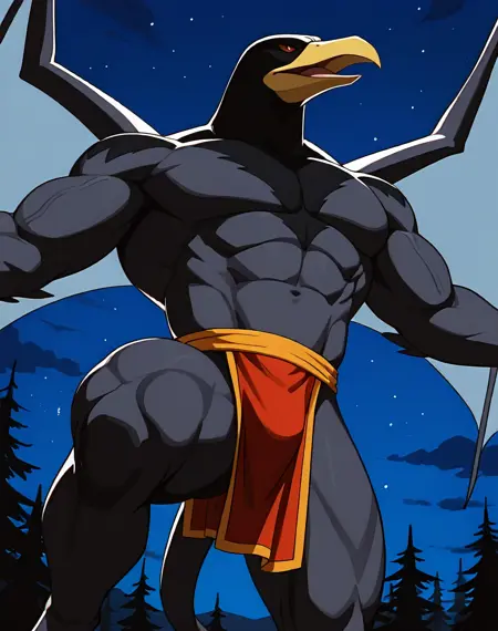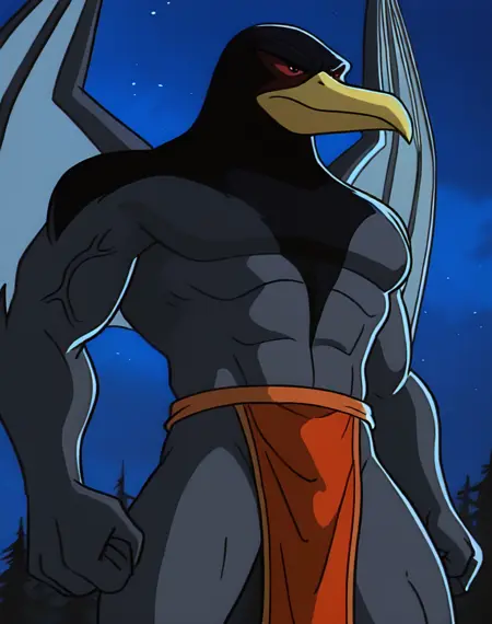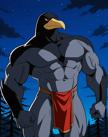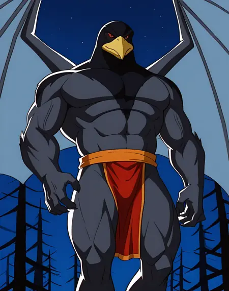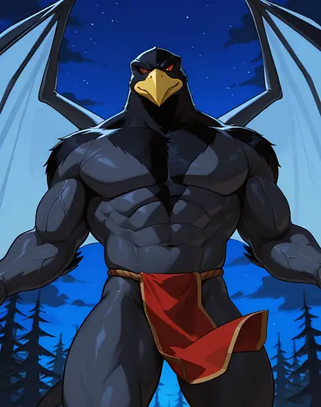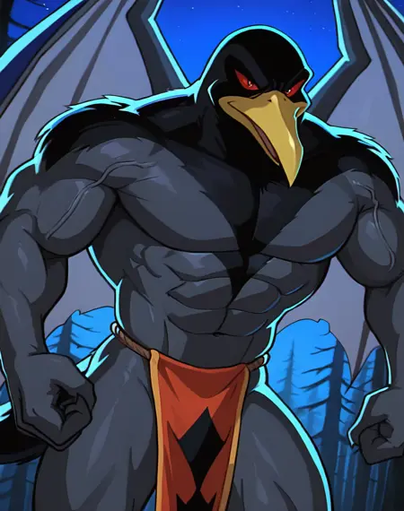 此LoRA的提示词为(Raven_the_Trickster, raven, gargoyle, muscular)。有时需要添加额外的提示词,例如(raven, raven headed, grey skin, wings, red eyes),因为某些检查点会显得很奇怪。