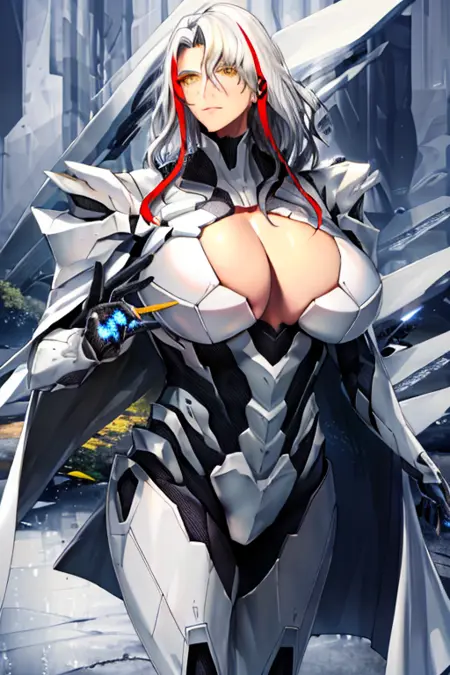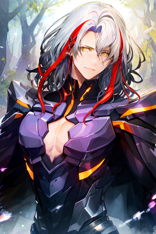 white hair, red hair, multicored hair, medium hair, yellow eyes