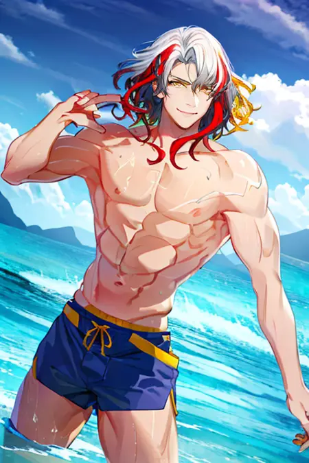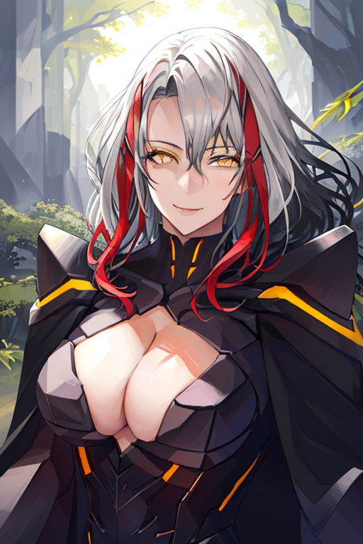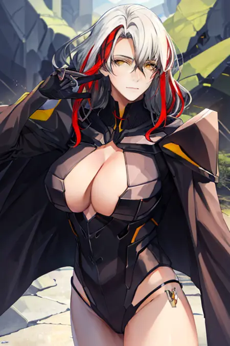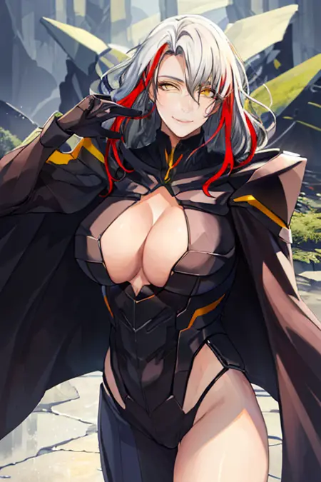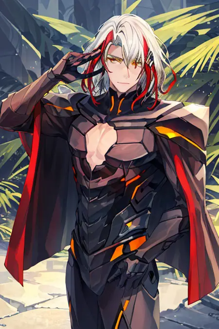 흰색 머리카락, 빨간색 머리카락, 다중 코어 머리카락, 중간 길이 머리카락, 노란색 눈