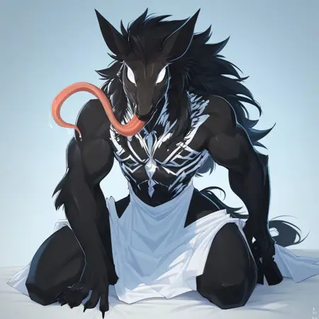 1boy,VenomHorse,anthro, anthro horse, glowing eyes,white eyes, black hair, black body, white markings,tail,muscular,claws,large Pectorals