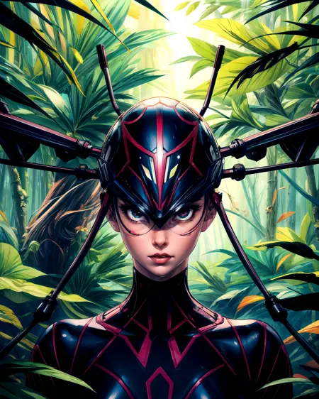 (best quality), portrait of a __bank/Creatures__, made of __bank/Organic_Shapes__, __bank/Colors__ __bank/Textures__ and __bank/Colors__ __bank/Technological_Elements__, in a __bank/Technological_Settings__, __bank/Natural_Settings__ in background, surreal, smooth and sharp details