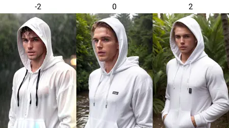 我非常喜欢在正向提示中加入 'wet hair' 的效果,但如果你要这样做,请确保 0>权重>-1,否则模型会产生损坏的图像(尝试从“超湿”进一步增强湿润感。)
