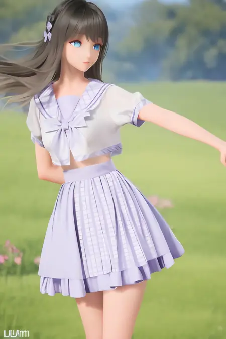 鹿鸣的模型,由于素材少了,所以脸部有点欠拟合,出的图有点怪