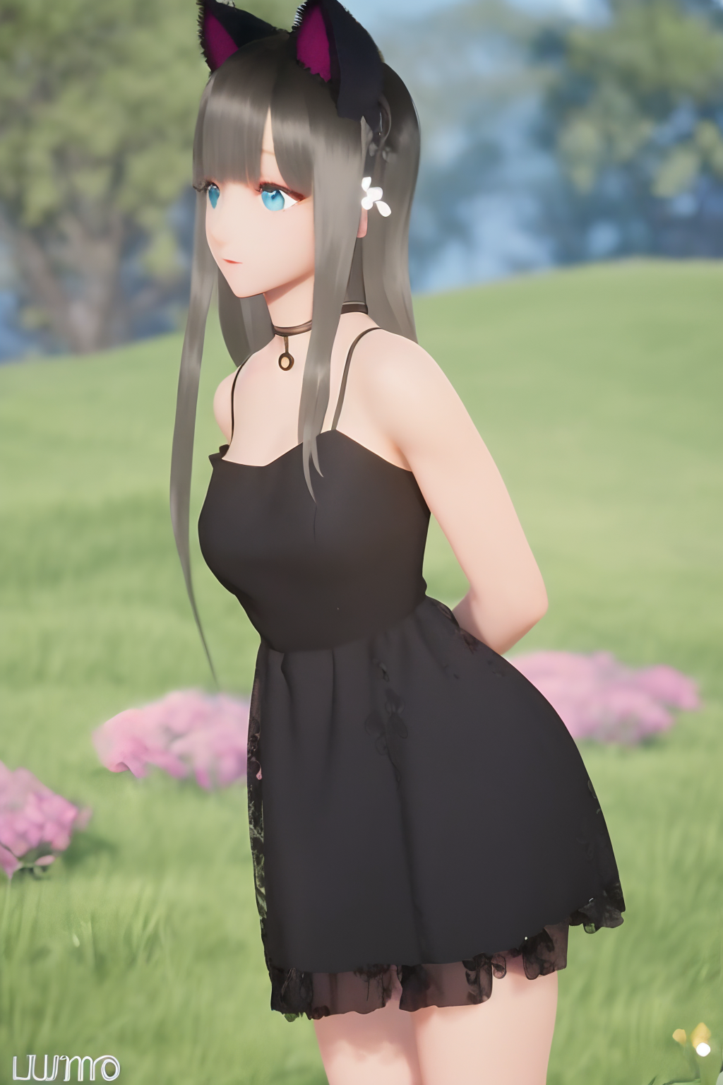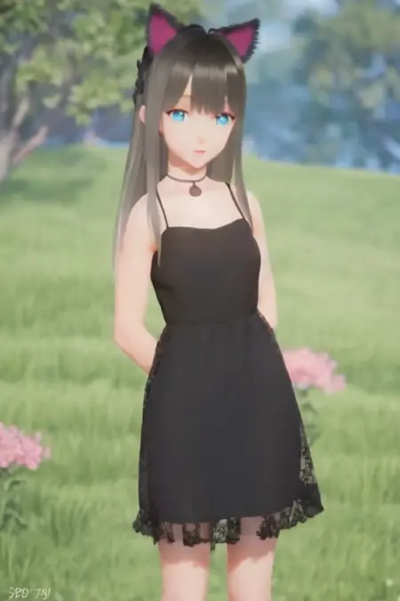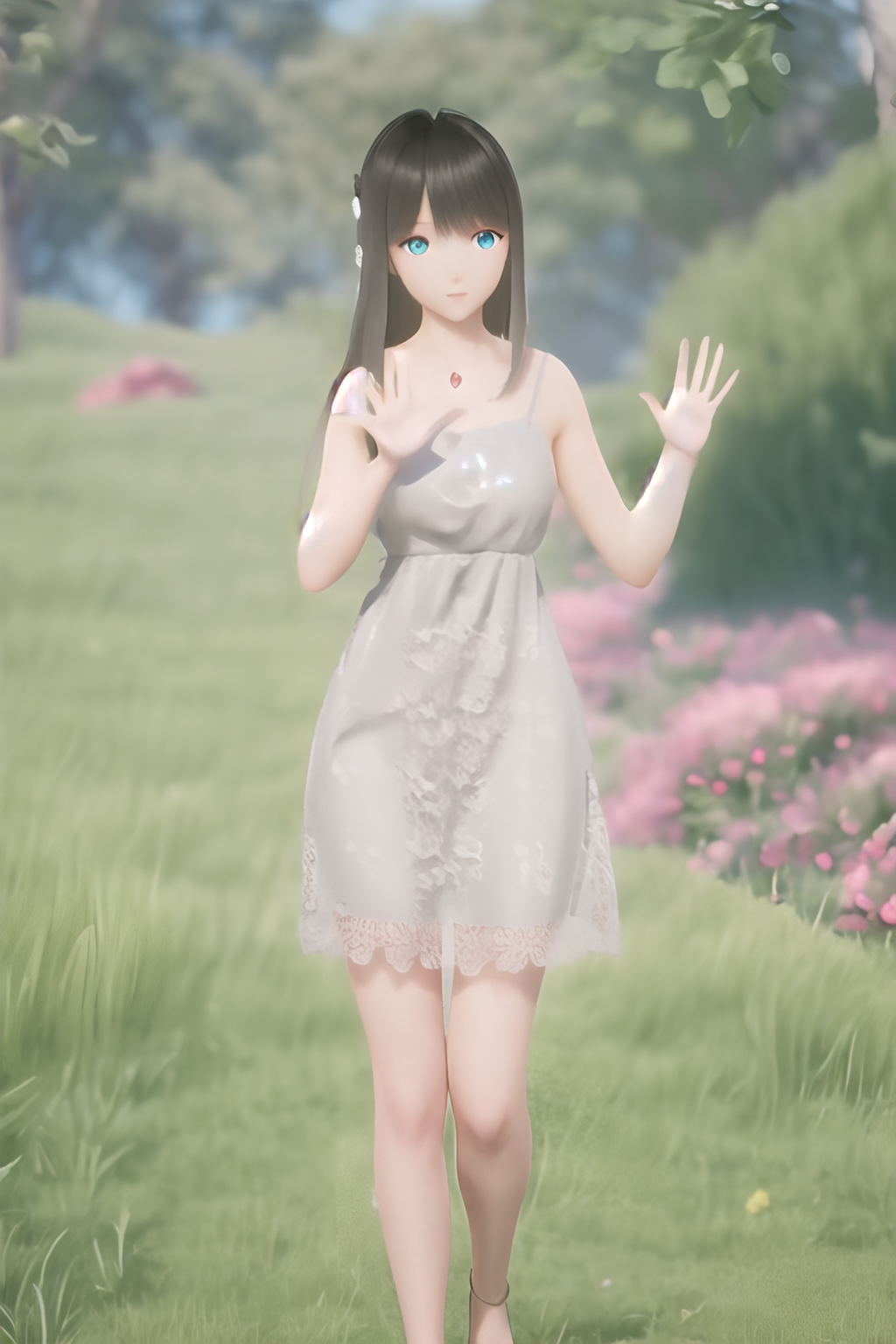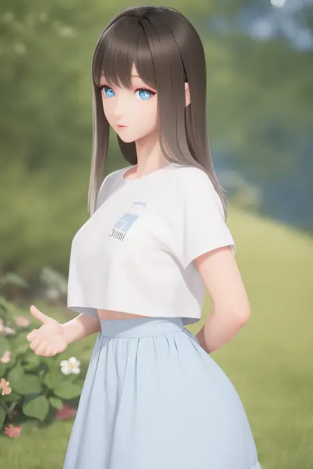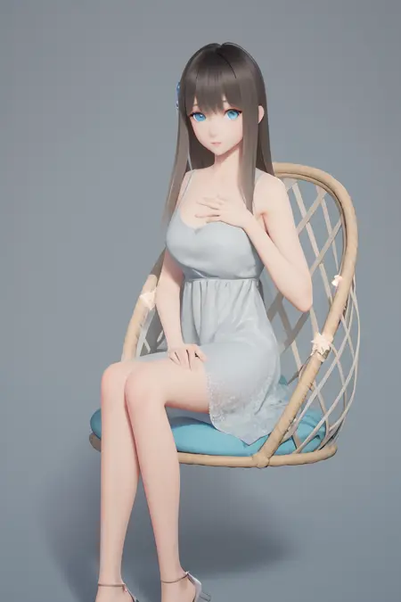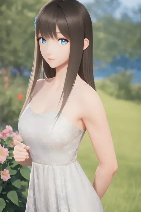 Usage:1girl, lumi, medium breasts, blue_eyes, long hair, sliver dress, solo,nice hands,brown hair