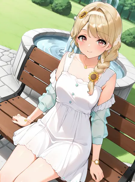 twin short braids, ShiningPhrase hair bow,服/衣服/clothing: