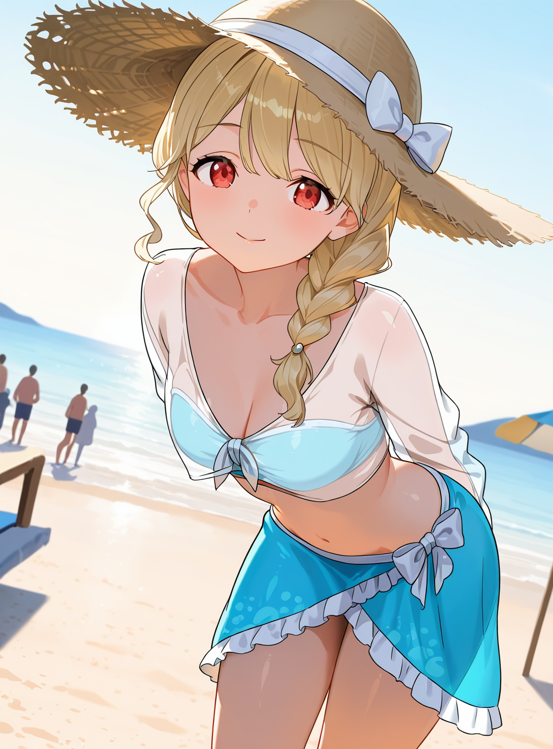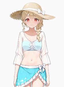 braided ponytail, hair over shoulder, straw hat,服/衣服/clothing: